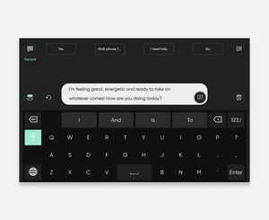 TD Talk is a speech generating app for literate adults with communication disabilities such as MND, multiple sclerosis, muscular dystrophy and cerebral palsy. It empowers people to talk using just their eyes or fingers. Express yourself naturally with a large selection of voices, and the ability to switch smoothly between a wide choice of languages and different conversation topics. Engage more actively in conversations with fast word and phrase prediction, and easy in-sentence editing. Communicate face-to-face by making your screen transparent with See Through Mode and your typed text visible in the rear-facing Partner Window. It’s also possible to use a custom, synthetic clone of your natural voice, with a choice from among several leading voice banking providers.